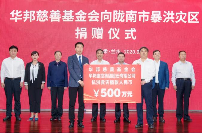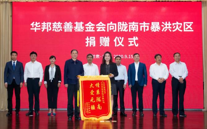 洪灾无情,人间有爱。9月15日,华邦慈善基金会在兰州向陇南市暴洪灾区捐赠500万元,支持陇南市抗洪救灾和灾后重建工作。甘肃省副省长、陇南市委书记孙雪涛,陇南市委副书记、市长崔景瑜,甘肃省广东商会会长、华邦控股集团董事局主席、华邦慈善基金会名誉理事长苏如春等出席捐赠仪式。