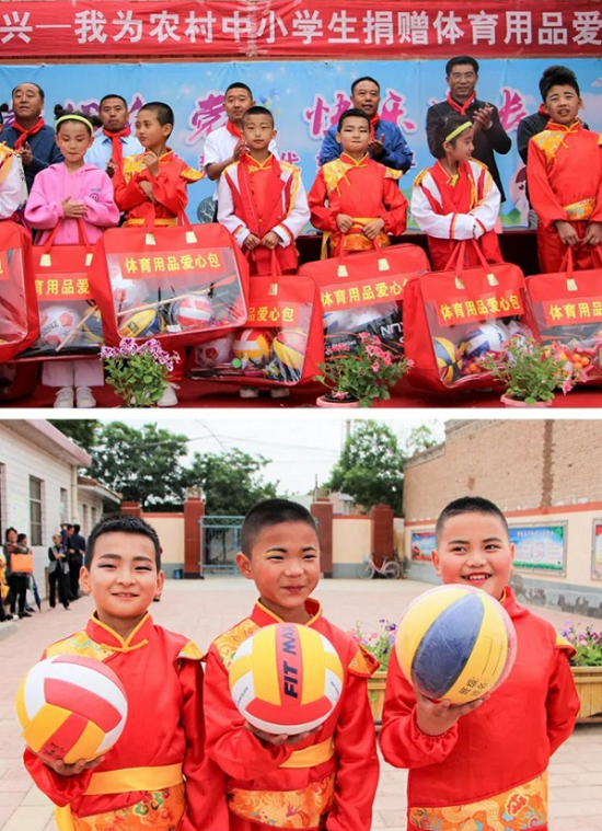 收到体育用品爱心包后,孩子们兴高采烈