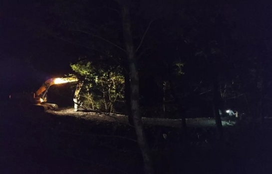 挖掘机连夜修筑临时便道