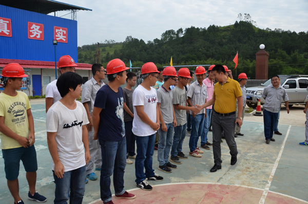 胡秉军总裁与第三工管中心员工亲切握手