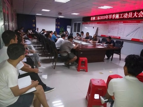 2019年9月11日,桂柳路召开了“全力奋战120天,献礼建国70载”的施工动员大会。会后桂柳三标项目部积极响应桂龙公司动员大会的要求,围绕贯彻集团生产管控目标,以“营造和谐项目团队、打造服务型职能部门,确保年度目标圆满完成”为主题组织项目全员召开施工动员大会,要求项目全体参建人员积极准备,精心组织,迅速在标段范围内掀起施工大干热潮。