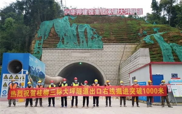 永福屯隧道、福岭隧道、大坪隧道为特长隧道,也是桂柳高速全线的重点控制性工程。复工复产以来,在施工管理过程中,各项目部科学组织,精心谋划,加快隧道施工进度。通过全体参建人员的共同努力,各作业面的生产进度显著提高,月掘进速度均破百米,其中永福屯隧道出口左线累计进尺突破1100米,大坪出口平均月开挖进尺在130m以上,福岭隧道出口左线隧道衬砌在单月完成156m;3月24日,福岭隧道出口左线率先突破1000米,继4月7号大坪隧道出口右线掘进突破1000米后,大坪隧道左线也于4月14日顺利掘进突破1000米。