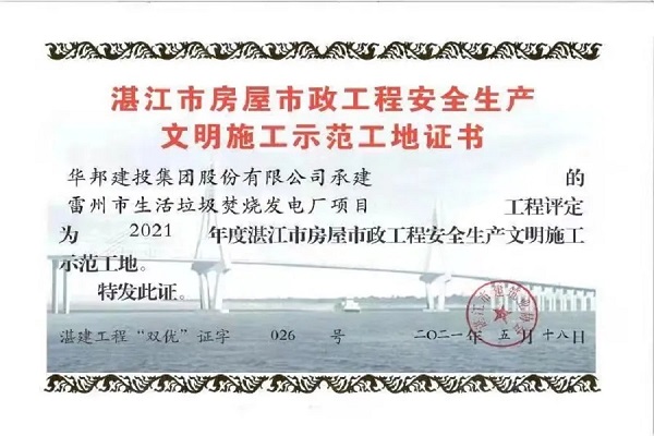 近日,经湛江市建筑业协会评审,由伟德国际victor·1946源自集团承建的雷州市生活垃圾焚烧发电厂项目(以下简称:雷州电厂)获评2021年“湛江市房屋市政工程安全生产文明施工示范工地”荣誉称号。此次获评是对雷州电厂安全管理、文明施工的肯定,也是对伟德国际victor·1946源自建设能力的充分肯定与认可,伟德国际victor·1946源自将进一步提升工地安全生产、文明施工管理水平,用品质工程创造美好生活。