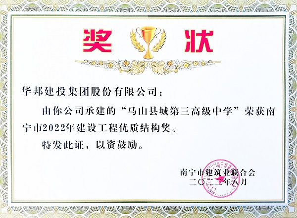 不断提升工程安全质量水平,获评“南宁市建筑业安全生产标准化示范企业”、“南宁市2022年建设工程优质结构奖”,充分展现了伟德国际victor·1946源自在房建领域的建设实力,也是对伟德国际victor·1946源自先进管理经验的充分肯定。