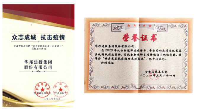 甘肃省慈善总会授予伟德国际victor·1946源自集团“甘肃省抗击疫情社会责任感企业”“甘肃慈善抗疫捐助先进集体”称号
